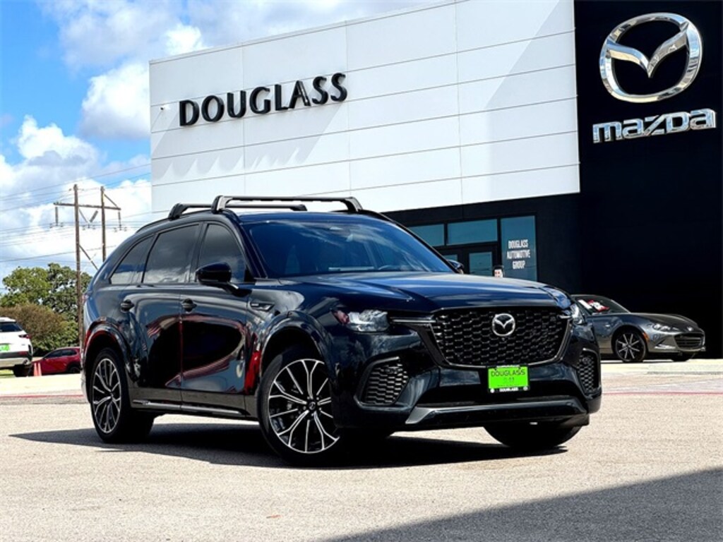 Certified. This 2025 Mazda CX-70 3.3 Turbo S Premium Plus in Jet Black Mica comes with the following features: I6 Turbo 8-Speed Automatic AWD ONE OWNER, CLEAN CARFAX, NO ACCIDENTS REPORTED, and CERTIFIED Mazda Certified Pre-Owned Certified Mazda Certified Pre-Owned Certified, 12 Speakers, 4-Wheel Disc Brakes, ABS brakes, Air Conditioning, Alloy wheels, AM/FM radio: SiriusXM, Auto High-beam Headlights, Auto-dimming door mirrors, Auto-dimming Rear-View mirror, Automatic temperature control, Brake assist, Bumpers: body-color, Cargo Blocks, Cargo Net, Compass, Crossbars in Black, Delay-off headlights, Driver door bin, Driver vanity mirror, Dual front impact airbags, Dual front side impact airbags, E911 Automatic Emergency Notification, Electronic Stability Control, Emergency communication system: MAZDA CONNECT, Four wheel independent suspension, Front anti-roll bar, Front Bucket Seats, Front Center Armrest w/Storage, Front dual zone A/C, Front reading lights, Fully automatic headlights, Garage door transmitter: HomeLink, Heads-Up Display, Heated door mirrors, Heated front seats, Heated rear seats, Heated steering wheel, Heated/Ventilated Front Bucket Seats, Illuminated entry, Infotainment System Voice Command, Knee airbag, Leather Shift Knob, Leather steering wheel, Low tire pressure warning, Mazda Connected Services, Mazda Online Navigation, Memory seat, Nappa Leather Seat Trim w/Quilting, Navigation system: MAZDA CONNECT, Occupant sensing airbag, Outside temperature display, Overhead airbag, Overhead console, Pandora Internet Radio Integration, Panic alarm, Passenger door bin, Passenger vanity mirror, Power door mirrors, Power driver seat, Power Liftgate, Power moonroof, Power passenger seat, Power steering, Power windows, Radio Broadcast Data System Program Information, Radio data system, Radio: AM/FM w/Bose Premium Audio Sound System, Rain sensing wipers, Rear air conditioning, Rear anti-roll bar, Rear reading lights, Rear seat center armrest, Rear window defroster, Rear window wiper, Remote keyless entry, Roadside Assistance Kit, Security system, SMS Text Msg Audio Delivery & Reply, Speed control, Speed-sensing steering, Split folding rear seat, Spoiler, Steering wheel memory, Steering wheel mounted audio controls, Tachometer, Telescoping steering wheel, Tilt steering wheel, Traction control, Trip computer, Turn signal indicator mirrors, Variably intermittent wipers, Ventilated front seats, and Wheels: 21" x 9.5J Aluminum Alloy.