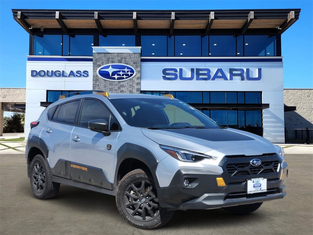 This 2025 Subaru Crosstrek Wilderness in Ice Silver Metallic comes with the following features: 2.5L 4-Cylinder DOHC 16V AWD H/K Speaker System & Pwr Moonroof & Pwr Driver St (10-Way Power Driver's Seat, harman/kardon Surround Sound Speaker System, and Power Moonroof), Wilderness Package (Auto-Dimming Exterior Mirror w/Approach Light, Auto-Dimming Mirror w/Compass & HomeLink, LED Upgrade, Rear Bumper Cover - Wilderness, and Rear Seatback Protector), 4-Wheel Disc Brakes, 6 Speakers, ABS brakes, Air Conditioning, Alloy wheels, AM/FM radio: SiriusXM, Anti-whiplash front head restraints, Auto High-beam Headlights, Automatic temperature control, Brake assist, Bumpers: body-color, Driver door bin, Driver vanity mirror, Dual front impact airbags, Dual front side impact airbags, Electronic Stability Control, Emergency communication system, Exterior Parking Camera Rear, Four wheel independent suspension, Front anti-roll bar, Front Bucket Seats, Front Center Armrest, Front dual zone A/C, Front fog lights, Front reading lights, Fully automatic headlights, Heated door mirrors, Heated Front Bucket Seats, Heated front seats, Illuminated entry, Knee airbag, Leather Shift Knob, Leather steering wheel, Low tire pressure warning, Occupant sensing airbag, Outside temperature display, Overhead airbag, Overhead console, Panic alarm, Passenger door bin, Passenger vanity mirror, Power door mirrors, Power steering, Power windows, Radio data system, Radio: Subaru 11.6" Multimedia Plus System, Rear anti-roll bar, Rear seat center armrest, Rear window defroster, Rear window wiper, Remote keyless entry, Security system, Speed control, Speed-sensing steering, Splash Guards - Wilderness, Split folding rear seat, Spoiler, Steering wheel mounted audio controls, Tachometer, Telescoping steering wheel, Tilt steering wheel, Traction control, Trip computer, Turn signal indicator mirrors, Variably intermittent wipers, Wheels: 17" x 7.0" J Matte Black Aluminum-Alloy, and Wilderness StarTex Upholstery.
