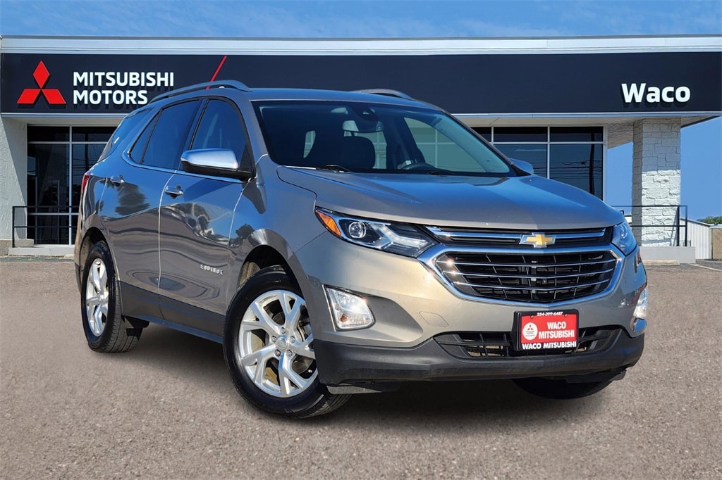 Let the team at Waco Mitsubishi introduce you to an entirely new kind of car-buying experience. This 2018 Chevrolet Equinox Premier in Pepperdust Metallic comes with the following features: 1.5L DOHC FWD, Confidence & Convenience II Package, Driver Confidence II Package (Bird's Eye View Surround Vision, Following Distance Indicator, Forward Collision Alert, IntelliBeam Auto High Beam Headlamp Control, Lane Keep Assist w/Lane Departure Warning, and Low Speed Forward Automatic Braking), Driver Convenience II Package (8-Way Power Front Passenger Seat Adjuster, Heated Rear Seats, Heated Steering Wheel, Ventilated Driver Seat, and Ventilated Front Passenger Seat), Preferred Equipment Group 1LZ, 18" Aluminum Wheels, 2 Rear USB Charging-Only Ports, 2 USB Data Ports, 2 USB Ports & Auxiliary Input Jack, 3.50 Final Drive Axle Ratio, 4-Wheel Disc Brakes, 6 Speaker Audio System Feature, 6 Speakers, 8-Way Power Driver Seat Adjuster, ABS brakes, Air Conditioning, Alloy wheels, AM/FM radio: SiriusXM, Apple CarPlay/Android Auto, Auto-dimming door mirrors, Auto-dimming Rear-View mirror, Automatic temperature control, Bluetooth® For Phone, Brake assist, Bumpers: body-color, Compass, Delay-off headlights, Driver door bin, Driver vanity mirror, Dual front impact airbags, Dual front side impact airbags, Electronic Stability Control, Emergency communication system: OnStar and Chevrolet connected services capable, Exterior Parking Camera Rear, Four wheel independent suspension, Front anti-roll bar, Front Bucket Seats, Front Center Armrest, Front dual zone A/C, Front fog lights, Front Passenger 4-Way Manual Seat Adjuster, Front reading lights, Fully automatic headlights, Garage door transmitter, Heated door mirrors, Heated Driver & Front Passenger Seats, Heated front seats, Illuminated entry, Leather Shift Knob, Low tire pressure warning, Memory seat, Occupant sensing airbag, Outside temperature display, Overhead airbag, Overhead console, Panic alarm, Passenger door bin, Passenger vanity mirror, Perforated Leather-Appointed Seat Trim, Power door mirrors, Power driver seat, Power Liftgate, Power steering, Power windows, Premium audio system: Chevrolet MyLink, Radio data system, Radio: 8" Chevrolet MyLink AM/FM Stereo, Rear anti-roll bar, Rear reading lights, Rear seat center armrest, Rear window defroster, Rear window wiper, Remote keyless entry, Roof rack: rails only, Security system, SiriusXM Satellite Radio, Speed control, Speed-sensing steering, Split folding rear seat, Spoiler, Steering wheel mounted audio controls, Tachometer, Telescoping steering wheel, Tilt steering wheel, Traction control, Trip computer, Turn signal indicator mirrors, and Variably intermittent wipers.