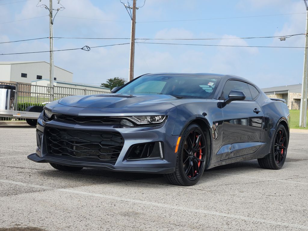This 2020 Chevrolet Camaro SS 2SS in Shadow Gray Metallic comes with the following features: 6.2L V8 RWD Preferred Equipment Group 2SS, 2.77 Rear Axle Ratio, 4-Wheel Disc Brakes, 6-Way Power Front Passenger Seat Adjuster, 8-Way Power Driver Seat Adjuster, 9 Speakers, ABS brakes, Air Conditioning, Alloy wheels, AM/FM radio: SiriusXM with 360L, Apple CarPlay/Android Auto, Auto-dimming door mirrors, Automatic temperature control, Bluetooth® For Phone, Bose Premium 9-Speaker Audio System Feature, Brake assist, Bumpers: body-color, Compass, Custom Launch Control, Delay-off headlights, Driver door bin, Driver vanity mirror, Dual front impact airbags, Dual front side impact airbags, Electronic Stability Control, Exterior Parking Camera Rear, Four wheel independent suspension, Front anti-roll bar, Front Bucket Seats, Front Center Armrest, Front dual zone A/C, Front reading lights, Front Sport Bucket Seats, Fully automatic headlights, Heads-Up Display, Heated door mirrors, Heated Driver & Front Passenger Seats, Heated front seats, Heated steering wheel, Illuminated entry, Knee airbag, Leather Shift Knob, Leather-Trimmed Seat Trim, Low tire pressure warning, Memory seat, Occupant sensing airbag, Outside temperature display, Overhead airbag, Paddle-Shift Manual Controls, Panic alarm, Passenger door bin, Passenger vanity mirror, Power door mirrors, Power driver seat, Power passenger seat, Power steering, Power windows, Premium audio system: Chevrolet Infotainment System, Radio data system, Radio: Chevrolet Infotainment 3 Plus System, Radio: Chevrolet Infotainment 3 Premium System, Rear anti-roll bar, Rear window defroster, Remote keyless entry, Remote Vehicle Starter System, Security system, SiriusXM w/360L, Speed control, Speed-sensing steering, Spoiler, Steering wheel mounted audio controls, Tachometer, Telescoping steering wheel, Tilt steering wheel, Traction control, Trip computer, Variably intermittent wipers, Ventilated Driver & Front Passenger Seats, Ventilated front seats, Voltmeter, and Wheels: 20" x 8.5" Fr & 20" x 9.5" Rr 5-Spoke Alum.