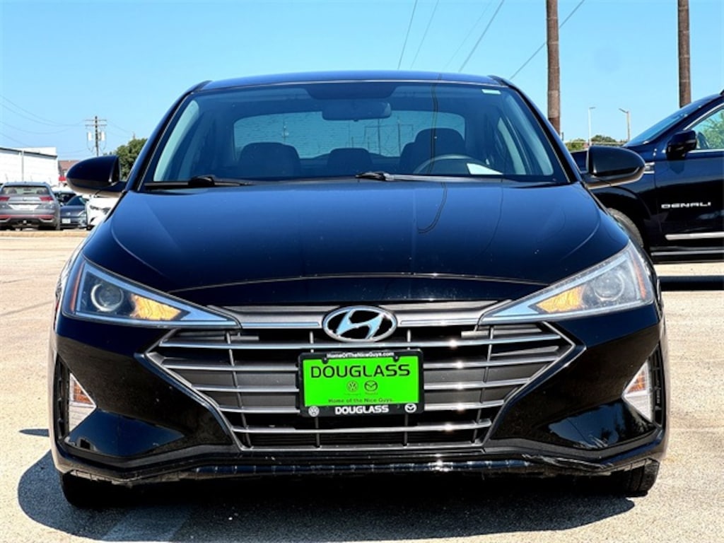 This 2019 Hyundai Elantra SE in Phantom Black comes with the following features: 2.0L 4-Cylinder DOHC 16V 6-Speed Automatic with Shiftronic FWD Option Group 01, 6 Speakers, ABS brakes, Air Conditioning, AM/FM radio, Brake assist, Bumpers: body-color, Carpeted Floor Mats, Delay-off headlights, Driver door bin, Driver vanity mirror, Dual front impact airbags, Dual front side impact airbags, Electronic Stability Control, Exterior Parking Camera Rear, Front anti-roll bar, Front Bucket Seats, Front Center Armrest, Front reading lights, Front wheel independent suspension, Illuminated entry, Knee airbag, Low tire pressure warning, Occupant sensing airbag, Outside temperature display, Overhead airbag, Overhead console, Panic alarm, Passenger door bin, Passenger vanity mirror, Power door mirrors, Power steering, Power windows, Premium Cloth Seat Trim, Radio: AM/FM/MP3 Audio System, Rear window defroster, Remote keyless entry, Security system, Speed control, Speed-sensing steering, Split folding rear seat, Steering wheel mounted audio controls, Tachometer, Telescoping steering wheel, Tilt steering wheel, Traction control, Trip computer, Variably intermittent wipers, and Wheels: 15" x 6" Steel w/Covers.