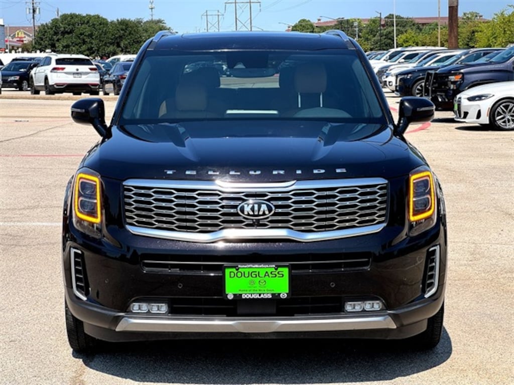 This 2021 Kia Telluride SX in Black Copper comes with the following features: 3.8L V6 DGI DOHC Dual CVVT 8-Speed Automatic FWD 10 Speakers, 3.648 Axle Ratio, 3rd row seats: split-bench, 4-Wheel Disc Brakes, ABS brakes, Air Conditioning, Alloy wheels, AM/FM radio: SiriusXM, Apple CarPlay & Android Auto, Auto High-beam Headlights, Auto-dimming Rear-View mirror, Automatic temperature control, Brake assist, Bumpers: body-color, Compass, Delay-off headlights, Driver door bin, Driver vanity mirror, Dual front impact airbags, Dual front side impact airbags, Electronic Stability Control, Emergency communication system: 911 Connect, Four wheel independent suspension, Front anti-roll bar, Front Bucket Seats, Front Center Armrest, Front dual zone A/C, Front fog lights, Front reading lights, Fully automatic headlights, Garage door transmitter: HomeLink, Heated & Ventilated Front Bucket Seats, Heated door mirrors, Heated front seats, Illuminated entry, Knee airbag, Leather Seat Trim, Leather Shift Knob, Leather steering wheel, Low tire pressure warning, Memory seat, Navigation System, Occupant sensing airbag, Outside temperature display, Overhead airbag, Overhead console, Panic alarm, Passenger door bin, Passenger vanity mirror, Power door mirrors, Power driver seat, Power Liftgate, Power moonroof, Power passenger seat, Power steering, Power windows, Radio data system, Radio: AM/FM/SIRIUS Premium Audio, Rear air conditioning, Rear anti-roll bar, Rear audio controls, Rear reading lights, Rear window defroster, Rear window wiper, Reclining 3rd row seat, Remote keyless entry, Roof rack: rails only, Security system, Smart Key w/ Push Button and Remote Start, Speed control, Speed-sensing steering, Split folding rear seat, Spoiler, Steering wheel mounted audio controls, SX Butterscotch Leather Seats, Tachometer, Telescoping steering wheel, Tilt steering wheel, Traction control, Trip computer, Turn signal indicator mirrors, Variably intermittent wipers, Ventilated front seats, and Wheels: 7.5" x 20" Black Finish Alloy.