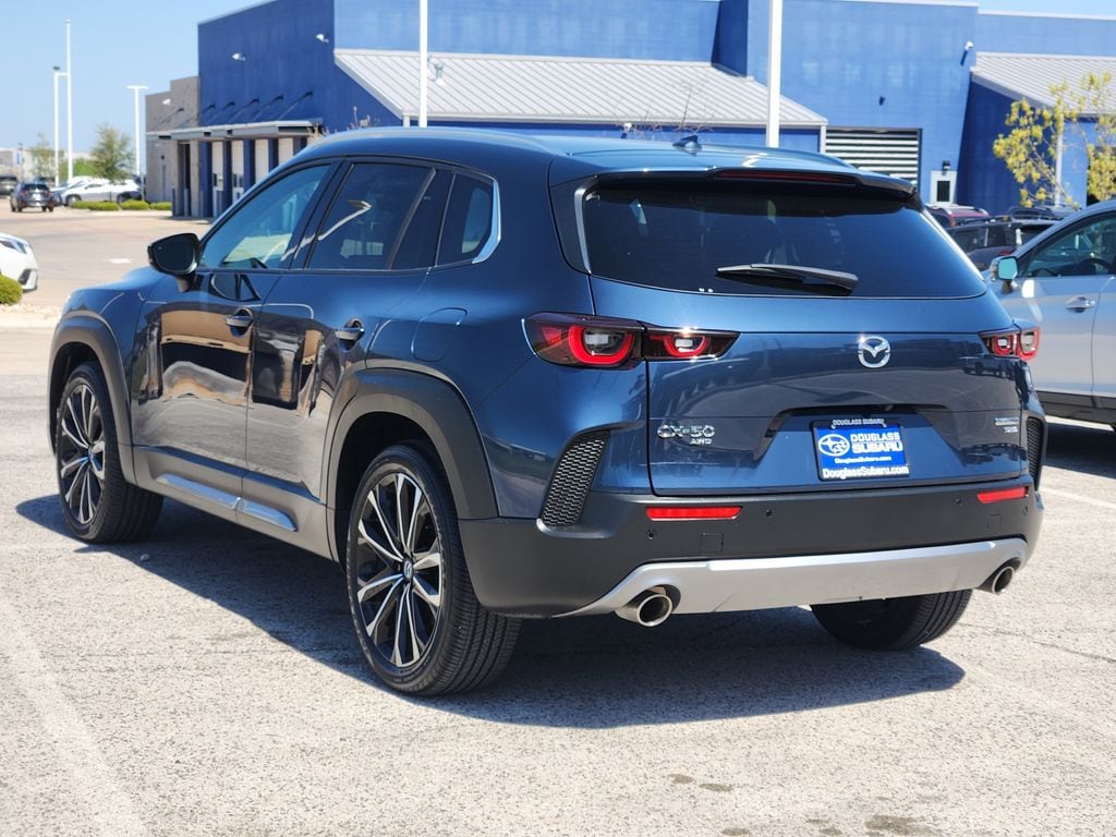 This 2024 Mazda CX-50 2.5 Turbo Premium Plus Package in Ingot Blue Metallic comes with the following features: 2.5L I4 Turbocharged DOHC 16V LEV3-ULEV70 227hp AWD Accent Package (Illuminated Door Sill Trim Plates and Side Rocker Trim), 12 Speakers, 20" x 8J Aluminum Alloy Wheels, 3.841 Axle Ratio, 4-Wheel Disc Brakes, ABS brakes, Air Conditioning, Alloy wheels, AM/FM radio: SiriusXM, AppLink/Apple CarPlay and Android Auto, Auto High-beam Headlights, Auto-dimming door mirrors, Auto-dimming Rear-View mirror, Automatic temperature control, Black Lug Nuts & Black Wheel Locks, Brake assist, Bumpers: body-color, Carpet Cargo Mat, Compass, Delay-off headlights, Driver door bin, Driver vanity mirror, Dual front impact airbags, Dual front side impact airbags, Electronic Stability Control, Emergency communication system: MAZDA CONNECT, Front anti-roll bar, Front Bucket Seats, Front Center Armrest, Front dual zone A/C, Front reading lights, Front wheel independent suspension, Fully automatic headlights, Garage door transmitter: HomeLink, Heads-Up Display, Heated & Ventilated Front Bucket Seats, Heated door mirrors, Heated front seats, Heated rear seats, Heated steering wheel, Illuminated entry, Knee airbag, Leather Seat Trim, Leather Shift Knob, Leather steering wheel, Low tire pressure warning, Memory seat, Navigation system: MAZDA CONNECT, Occupant sensing airbag, Outside temperature display, Overhead airbag, Overhead console, Panic alarm, Passenger door bin, Passenger vanity mirror, Power door mirrors, Power driver seat, Power Liftgate, Power moonroof, Power passenger seat, Power steering, Power windows, Radio data system, Radio: AM/FM/HD Audio System, Rain sensing wipers, Rear seat center armrest, Rear window defroster, Rear window wiper, Remote keyless entry, Speed control, Speed-sensing steering, Split folding rear seat, Spoiler, Steering wheel mounted audio controls, Tachometer, Telescoping steering wheel, Tilt steering wheel, Traction control, Trip computer, Turn signal indicator mirrors, Variably intermittent wipers, and Ventilated front seats.