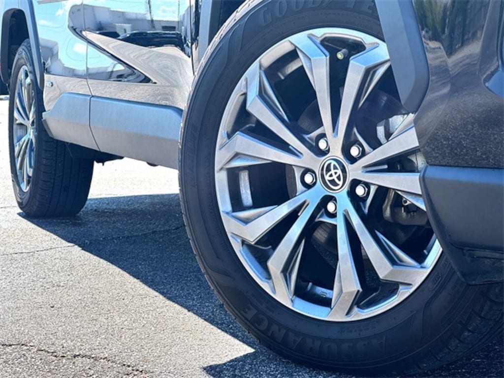 This 2022 Toyota RAV4 Hybrid XLE Premium in Midnight Black Metallic comes with the following features: 2.5L 4-Cylinder eCVT AWD 2.5L 4-Cylinder 2.5L 4-Cylinder, 3 Spoke Leather Steering Wheel, 4-Wheel Disc Brakes, 6 Speakers, ABS brakes, Air Conditioning, Alloy wheels, AM/FM radio: SiriusXM, AM/FM Stereo, Apple CarPlay/Android Auto, Auto High-beam Headlights, Automatic temperature control, Axle Ratio: TBD, Brake assist, Bumpers: body-color, Delay-off headlights, Driver door bin, Driver vanity mirror, Dual front impact airbags, Dual front side impact airbags, Electronic Stability Control, Emergency communication system: Safety Connect with 1-year trial, Exterior Parking Camera Rear, Four wheel independent suspension, Front anti-roll bar, Front Bucket Seats, Front Center Armrest, Front Door Smart Key System w/Push Button Start, Front dual zone A/C, Front Fog & Driving Lamp, Front fog lights, Front reading lights, Front Sport Seats, Fully automatic headlights, Heated door mirrors, Illuminated entry, Knee airbag, Lane Departure Warning System, Leather Shift Knob, Low tire pressure warning, Occupant sensing airbag, Outside temperature display, Overhead airbag, Overhead console, Panic alarm, Passenger door bin, Passenger vanity mirror, Power door mirrors, Power driver seat, Power Liftgate, Power moonroof, Power steering, Power windows, Radio data system, Rear anti-roll bar, Rear seat center armrest, Rear window defroster, Rear window wiper, Remote keyless entry, Roof rack: rails only, SofTex Seat Trim, Speed control, Speed-sensing steering, Split folding rear seat, Spoiler, Steering wheel mounted audio controls, Telescoping steering wheel, Tilt steering wheel, Traction control, Trip computer, Turn signal indicator mirrors, Variably intermittent wipers, and Wheels: 18" x 7.0J 5-Spoke Sport Alloy.